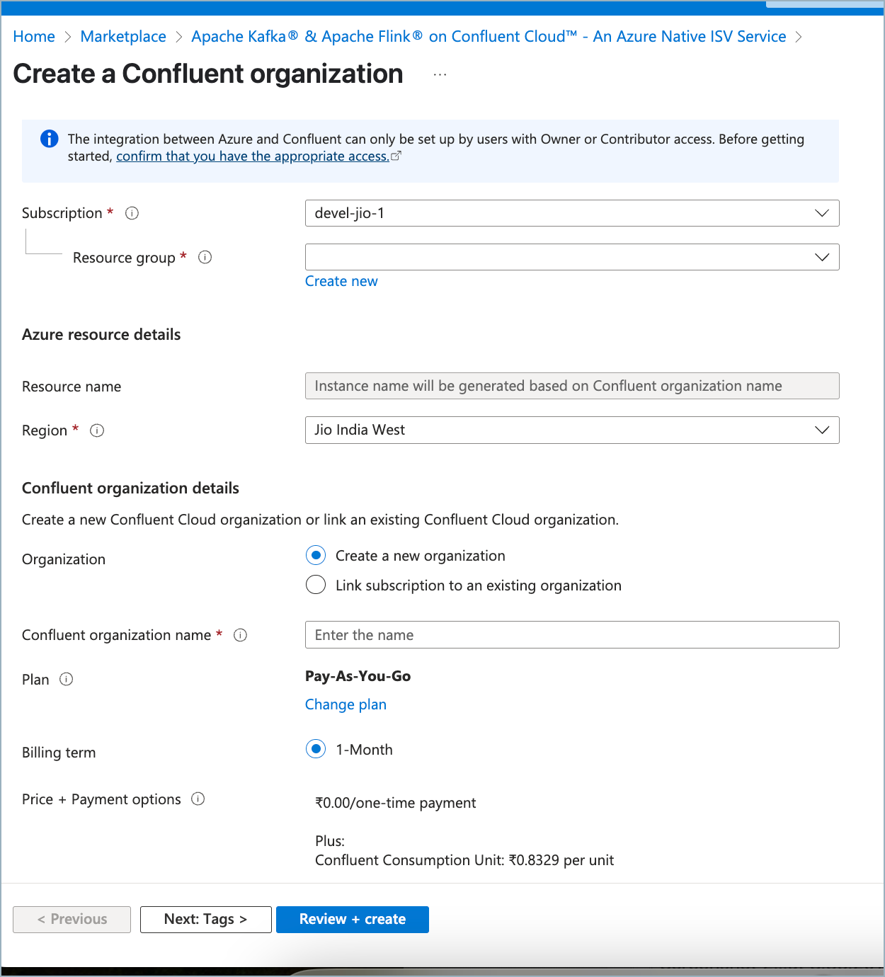 You subscribe to Confluent through Jio account on Azure Marketplace and seeing the following error: