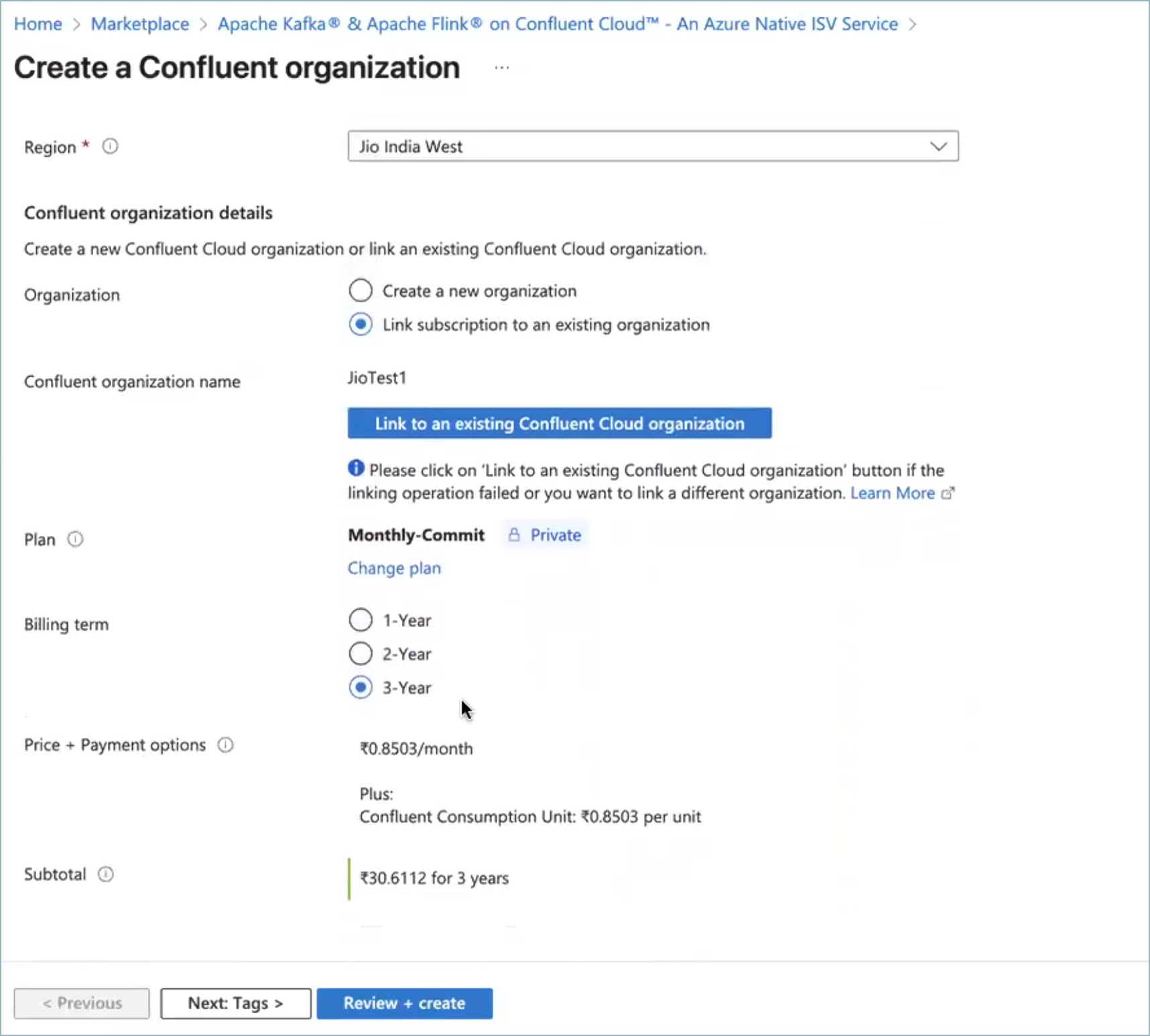 Get Started with Confluent Cloud on the Jio Marketplace with Commitments