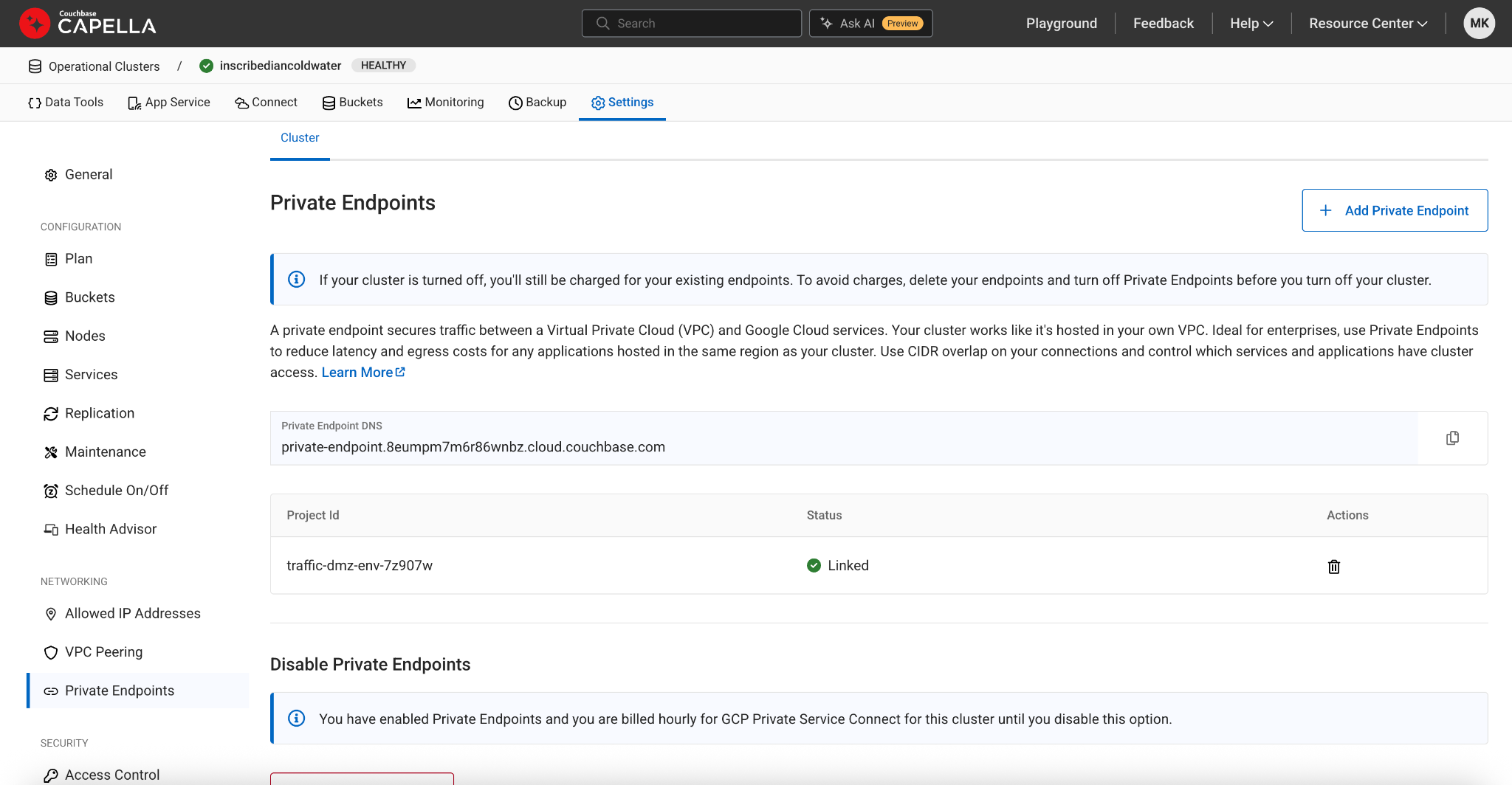 Step 3. Configure the Couchbase Capella private endpoint