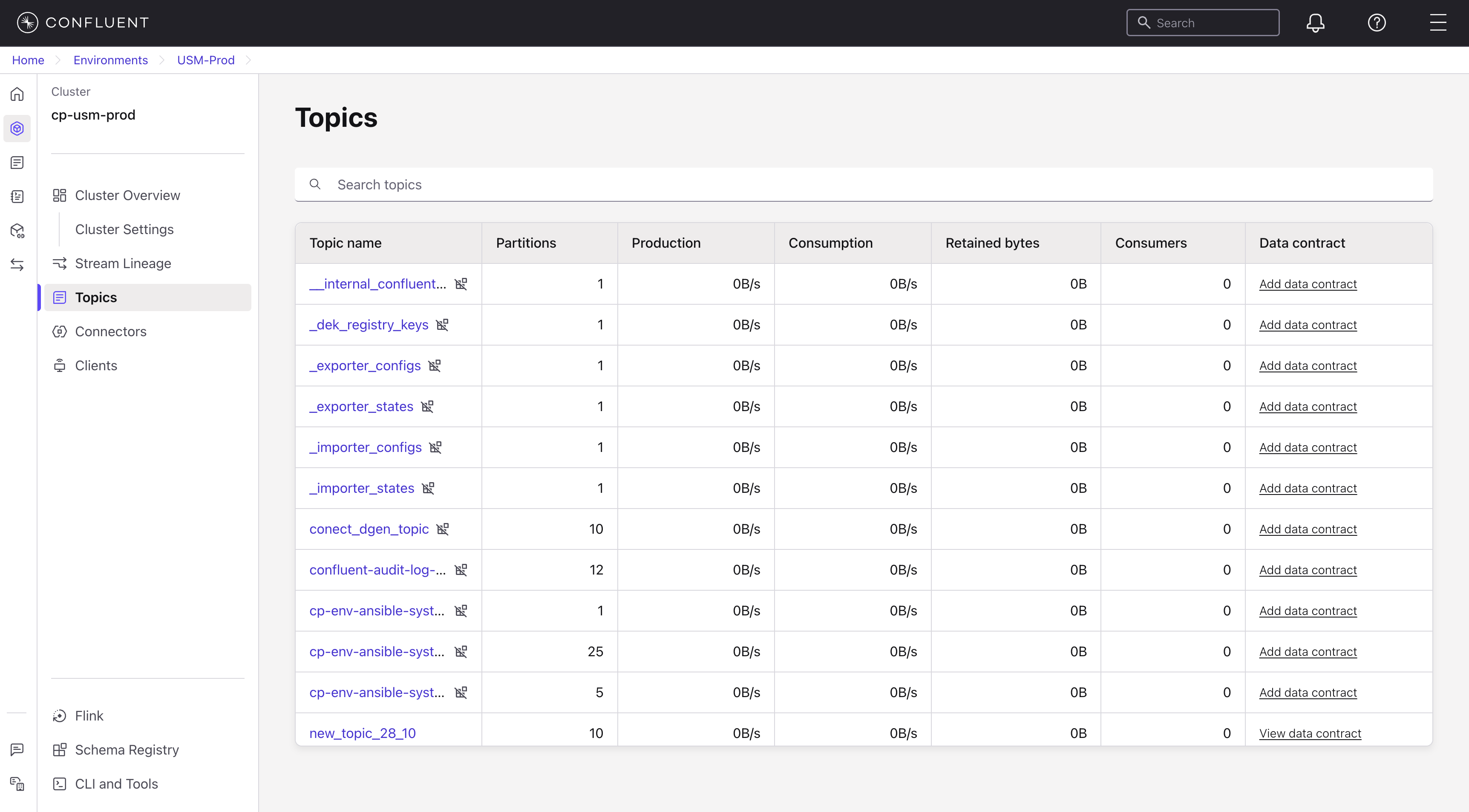 If no data is present, click Create Data Contract to add a data contract. For instructions, see Create a topic schema.