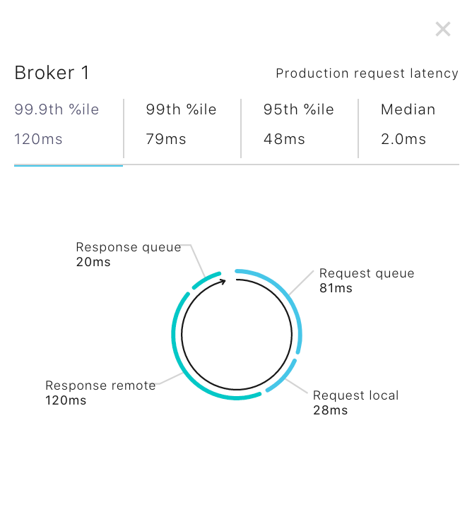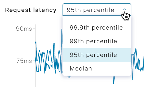 To view production or consumption request latency by a specific percentage, select a percentage from the menu over the Request latency graph.