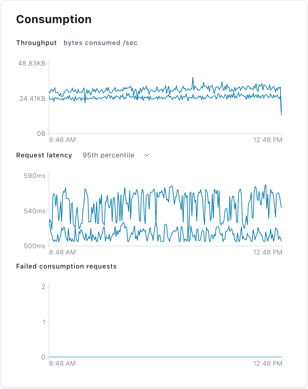 Click a point on the graph in the Request latency panel to view details on Consumption request latency.