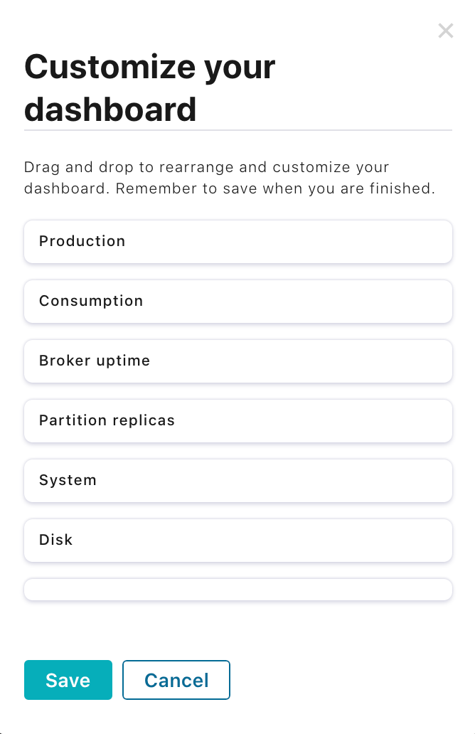 Drag and drop to rearrange the order of the brokers metrics dashboard panels.