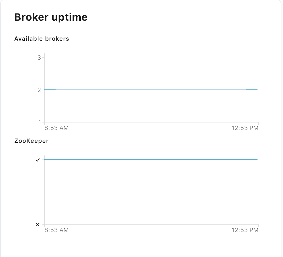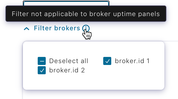 Broker uptime metrics are cluster-wide, and do not apply to individual brokers. The Filter broker controls are not applicable to the Broker uptime panel.