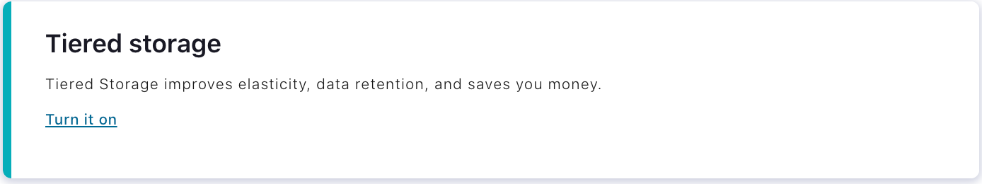 The Tiered storage panel takes you to Cluster Settings -> Storage, which includes a tab where you can configure Tiered Storage.