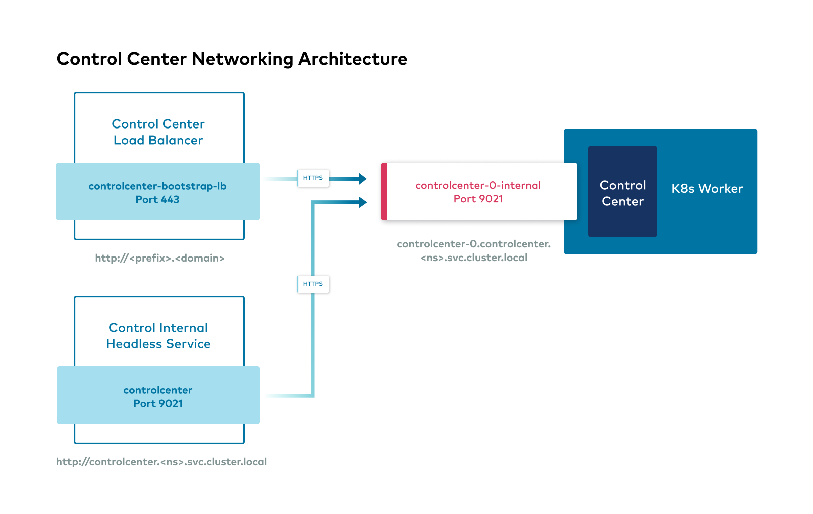 The following images show the networking interfaces available for Confluent Platform components.