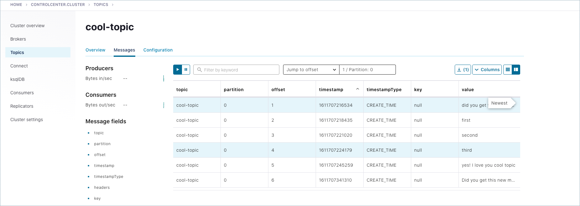 You may want to leave the producer running for a moment, as you are about to revisit Topics on the Control Center.