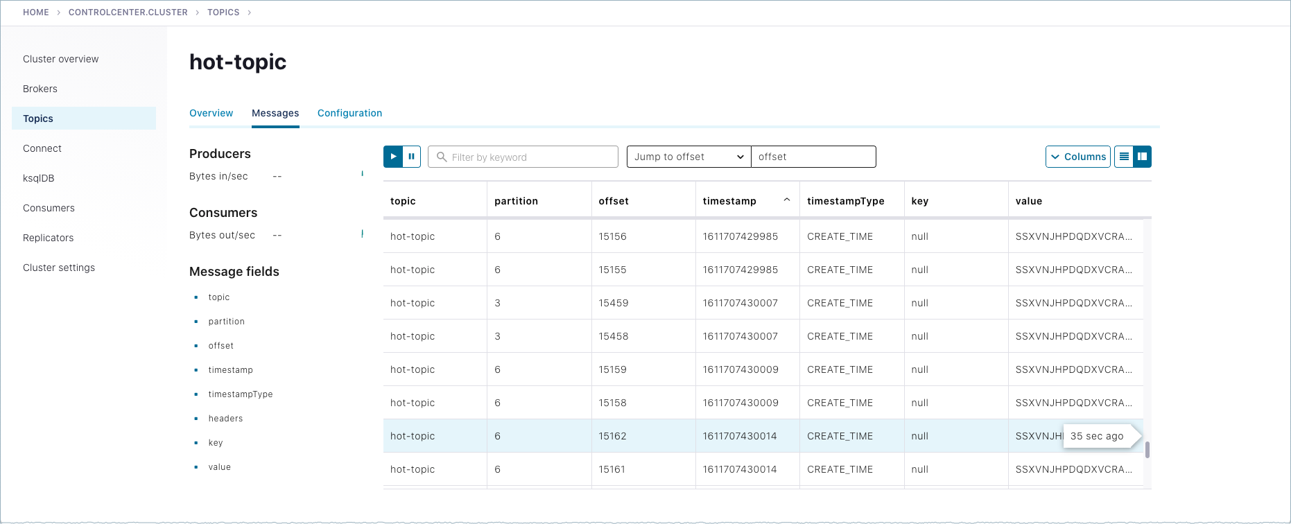 Now that you have created some topics and produced message data to a topic (both manually and with auto-generated), you can optionally inspect topics using Control Center (if you opted to install it as described in (Optional) Install and configure Confluent Control Center).