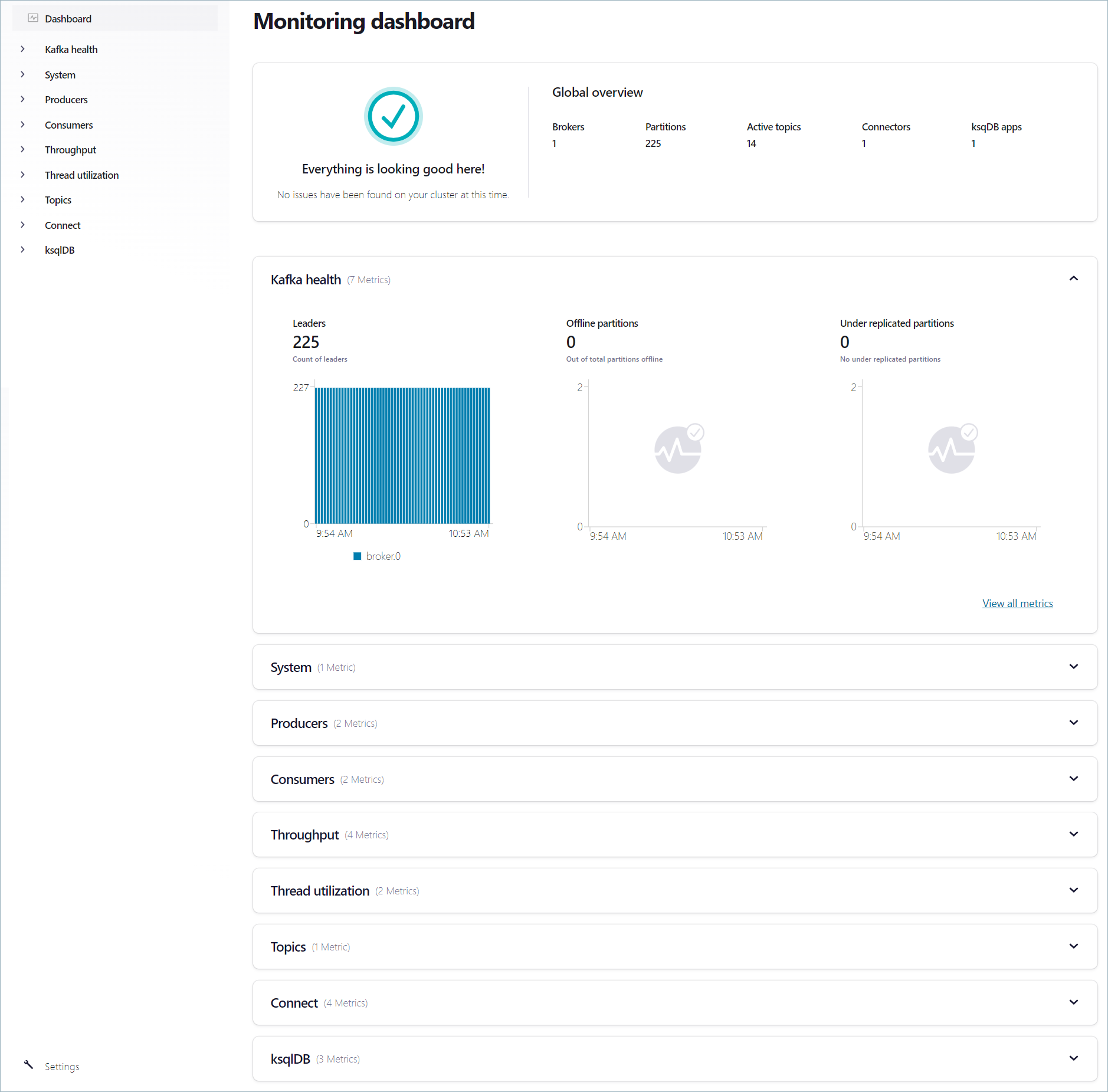 Metrics for your Kafka cluster deployment.