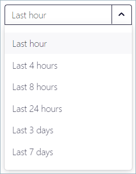 Each metric is displayed as a time-series graph showing the most recent data. Click the dropdown to set the time period you want to view, which can range from the last hour to the last 30 days.