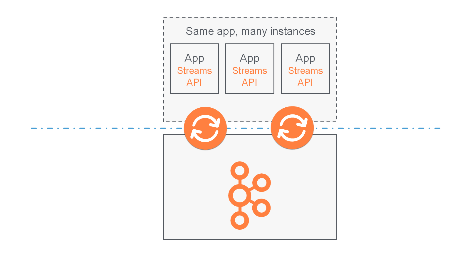 An application instance is any running instance or “copy” of your application. Application instances are the primary means to elasticly scale and parallelize your application, and they also contribute to making it fault-tolerant. For example, you may need the power of ten machines to handle the incoming data load of your application; here, you could opt to run ten instances of your application, one on each machine, and these instances would automatically collaborate on the data processing – even as new instances/machines are added or existing ones removed during live operation.