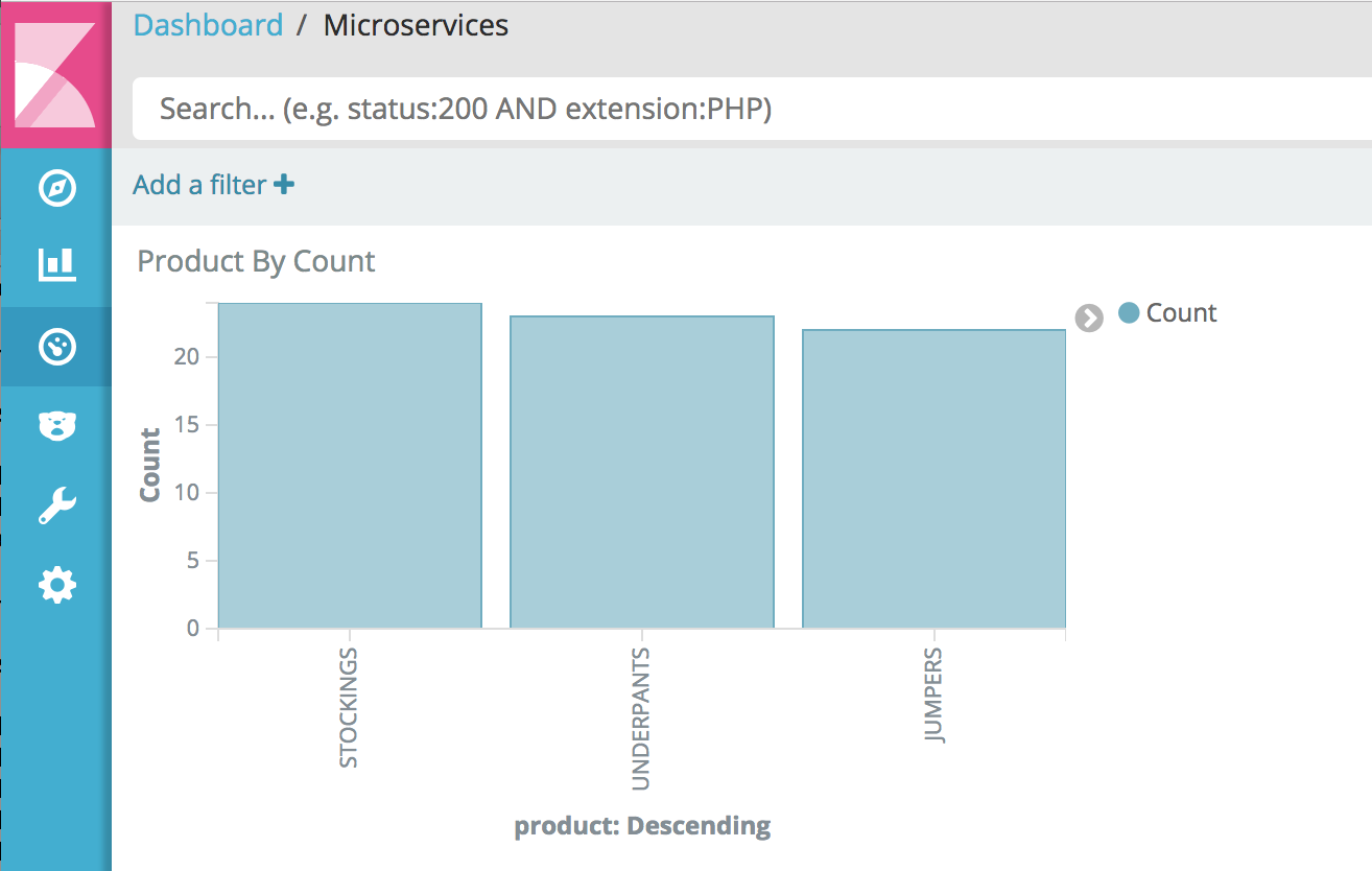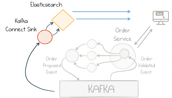 Full-text search is added via an Elasticsearch database connected through Kafka’s Connect API (source). View the Kibana dashboard at http://localhost:5601/app/kibana#/dashboard/Microservices
