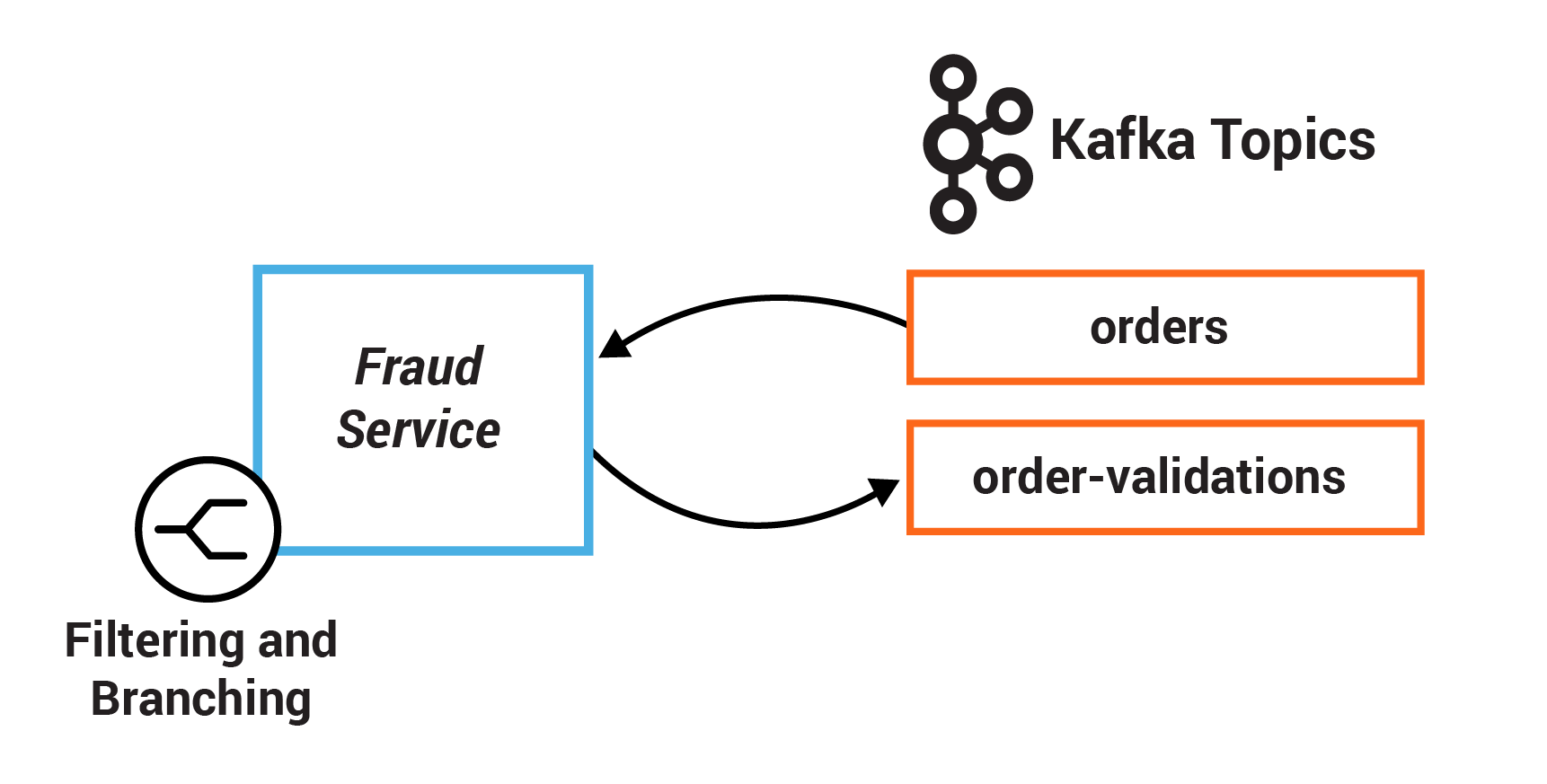Second branched stream: FRAUD_CHECK will pass for predicate where order value < FRAUD_LIMIT