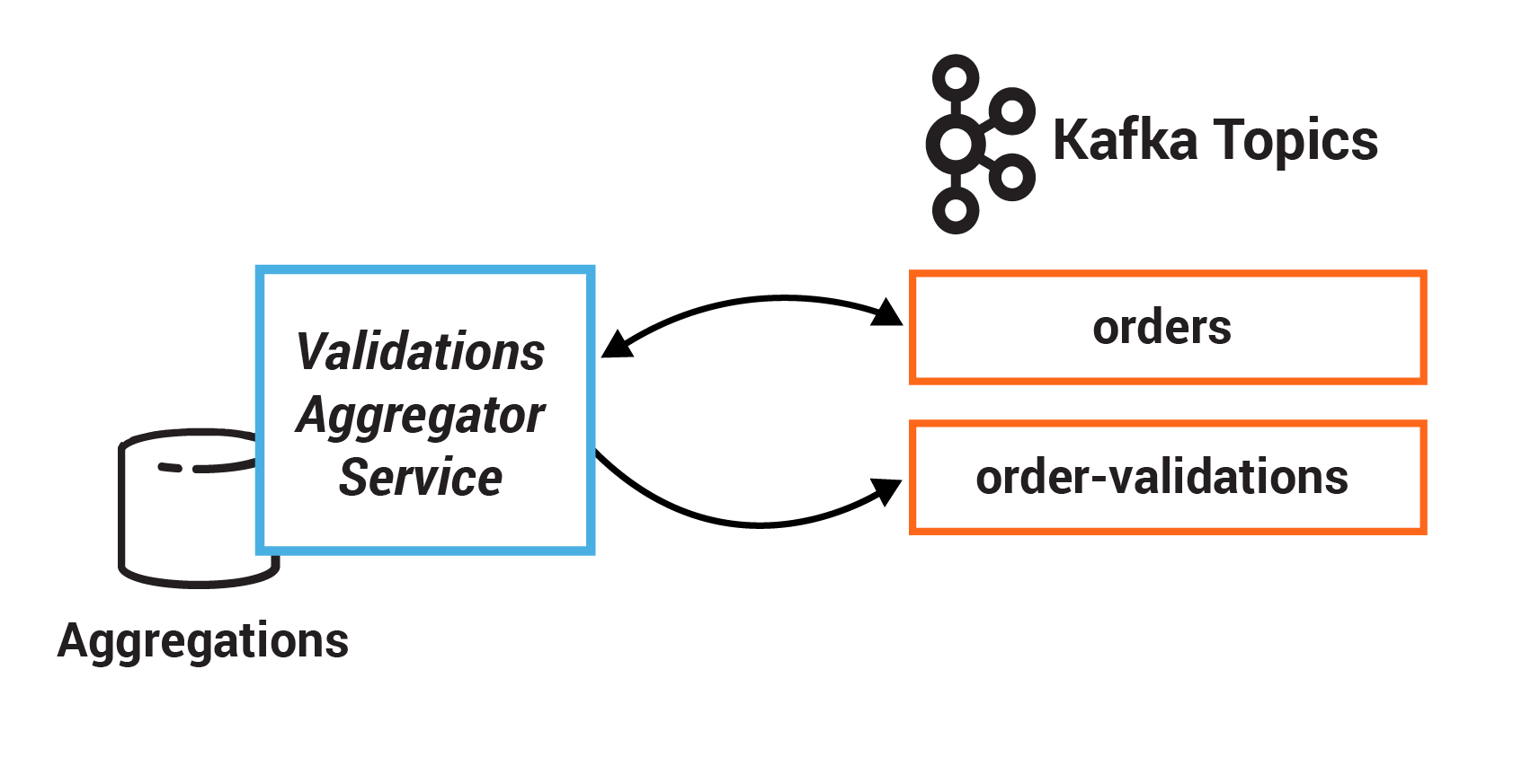 The result of each validation is pushed through a separate topic, Order Validations, so that we retain the single writer status of the Orders Service —> Orders Topic (Ben Stopford’s book discusses several options for managing consistency in event collaboration).