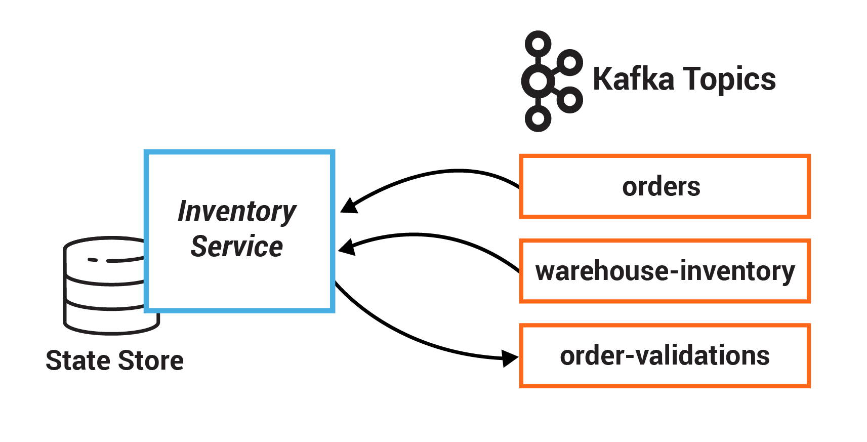 In this exercise, you will create a state store for the Inventory Service. This state store is initialized with data from a Kafka topic before the service starts processing, and then it is updated as new orders are created.