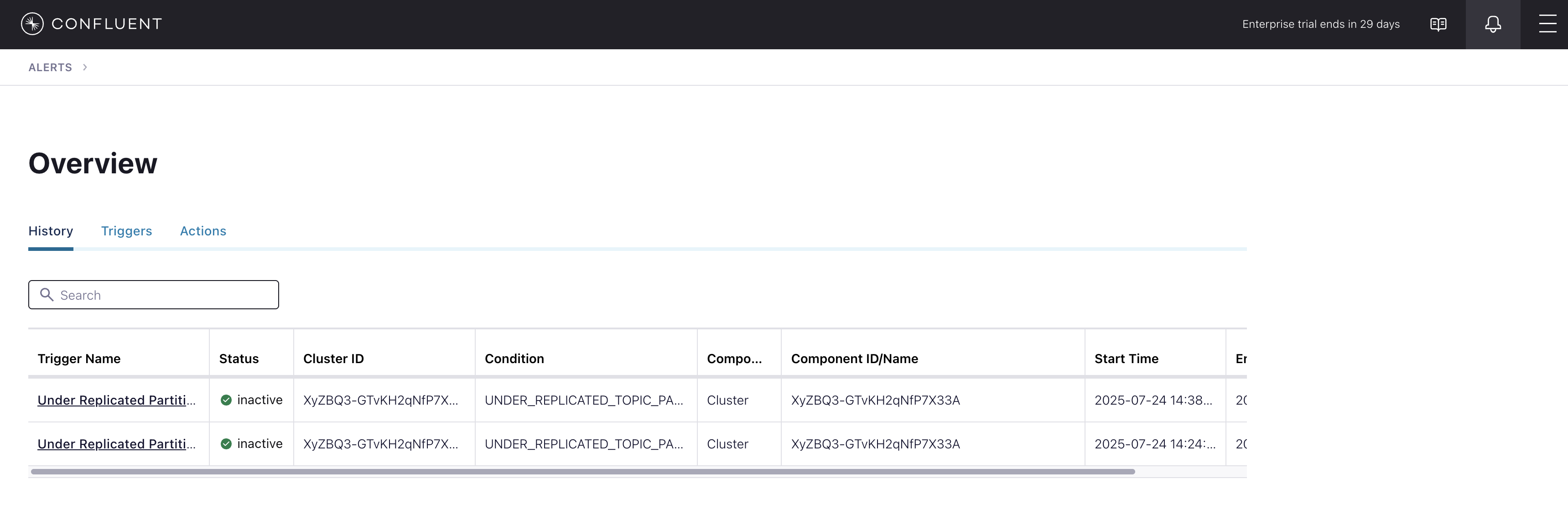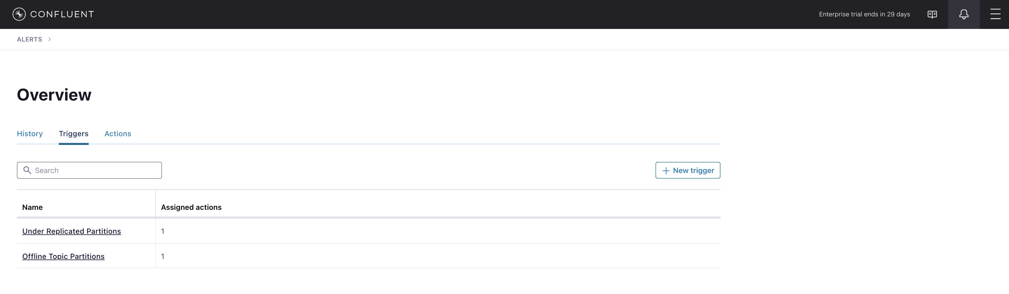Under Replicated Partitionshappens when a broker reports non-zero under replicated partitions, and it causes an actionEmail Administrator.The trigger