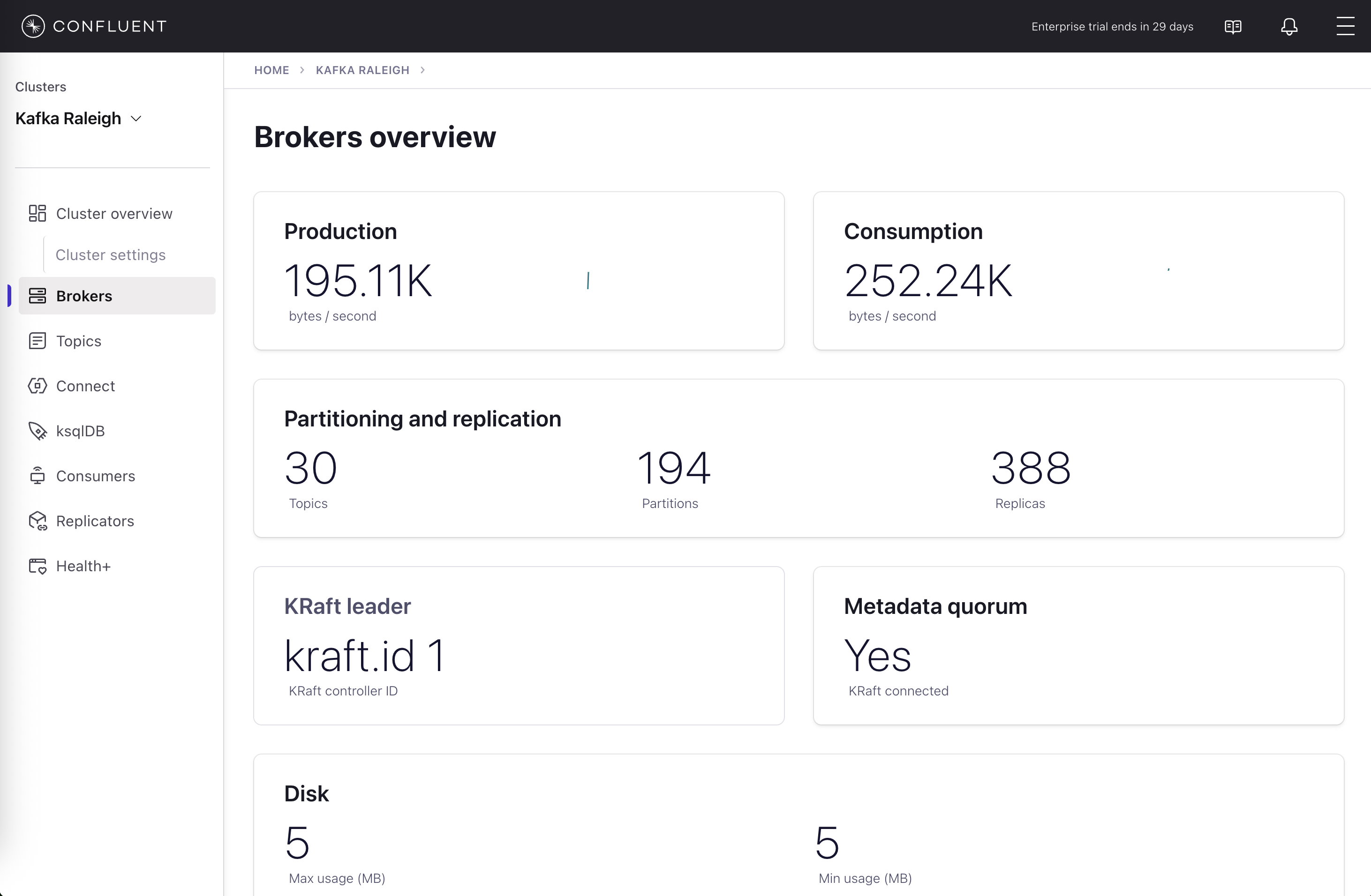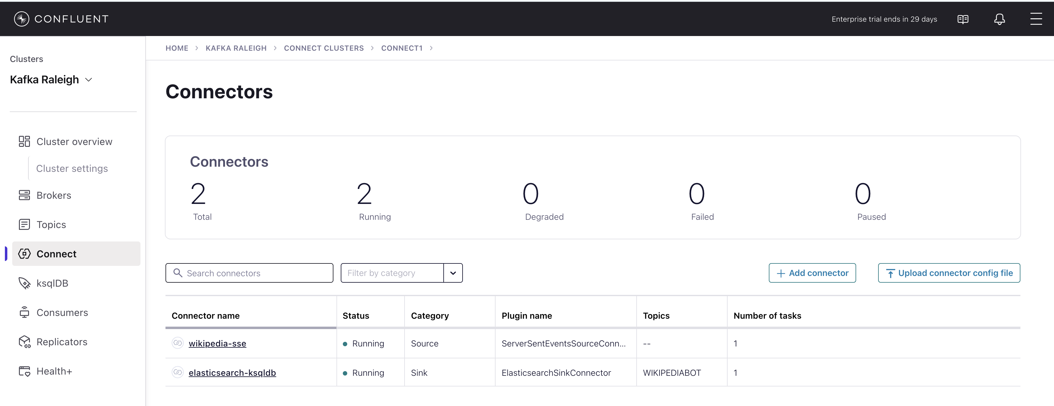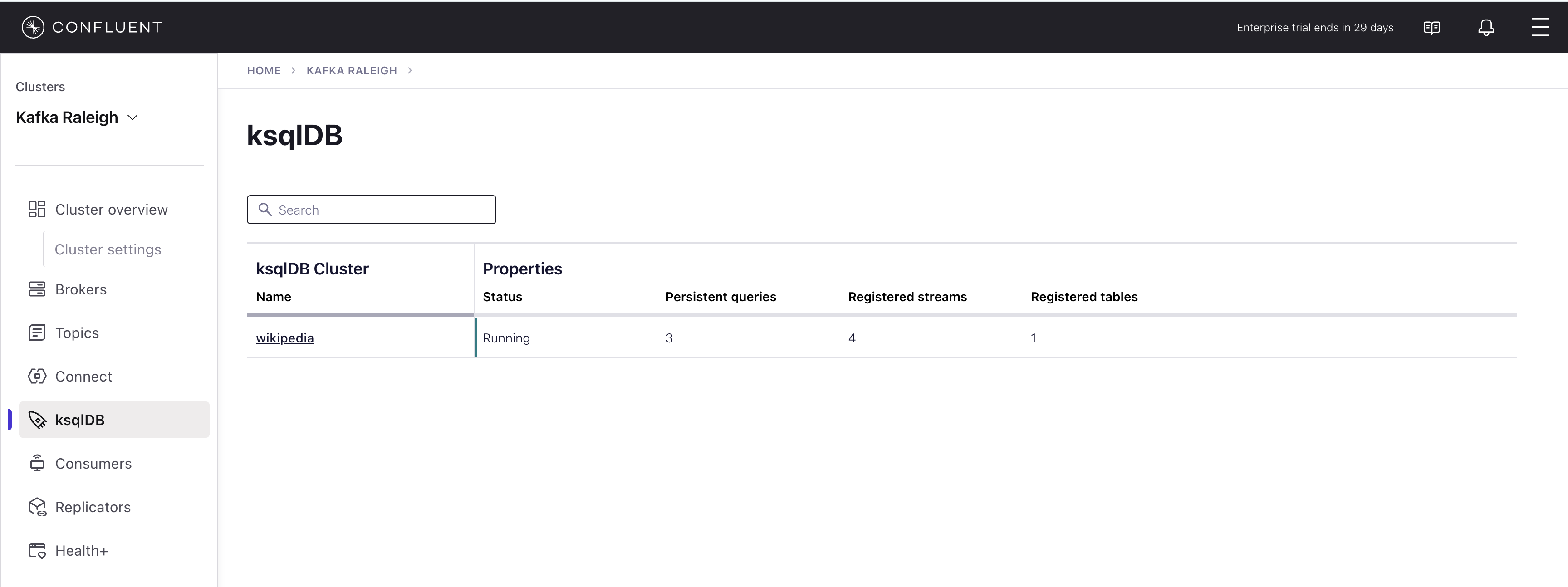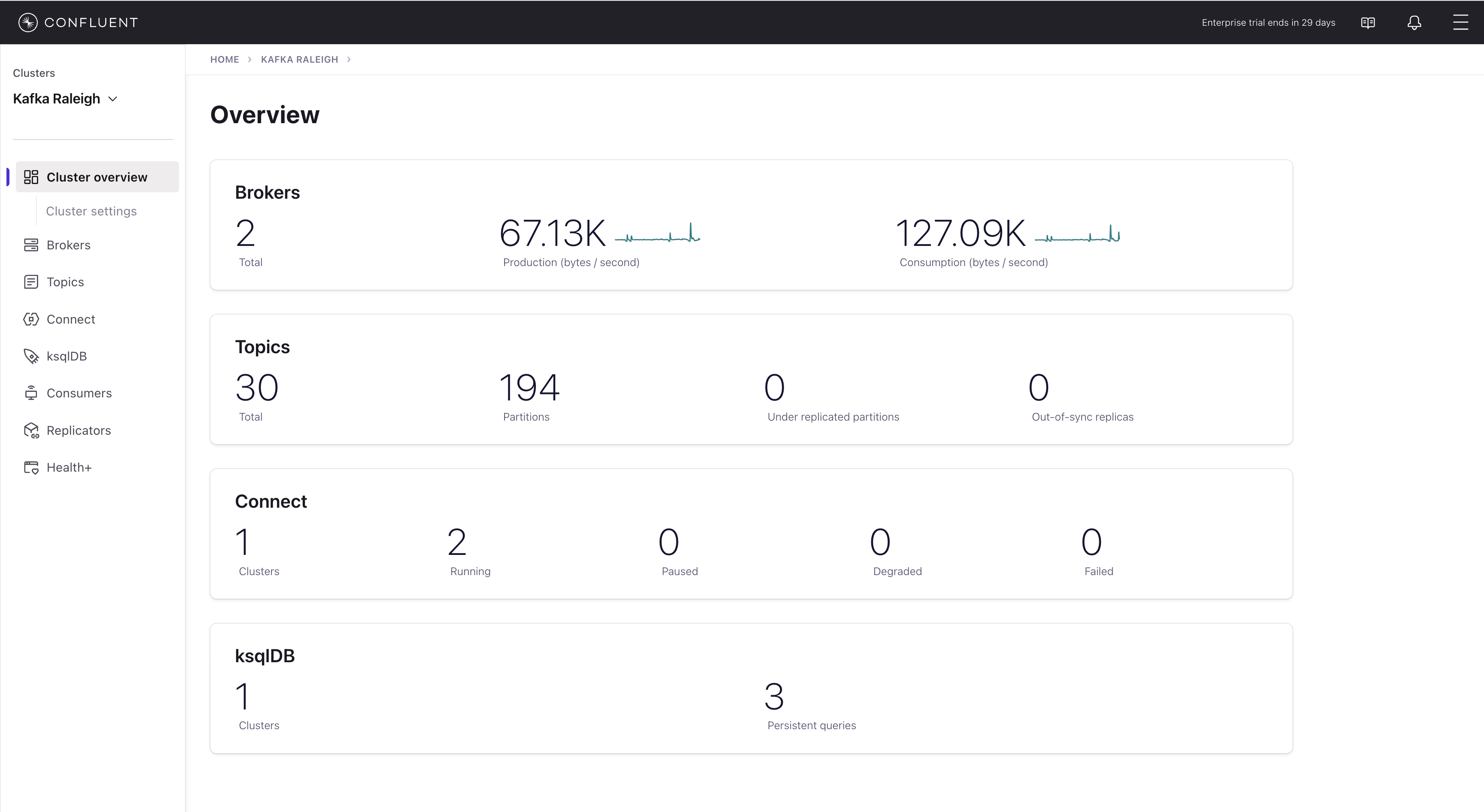 Select the cluster named Kafka Raleigh.