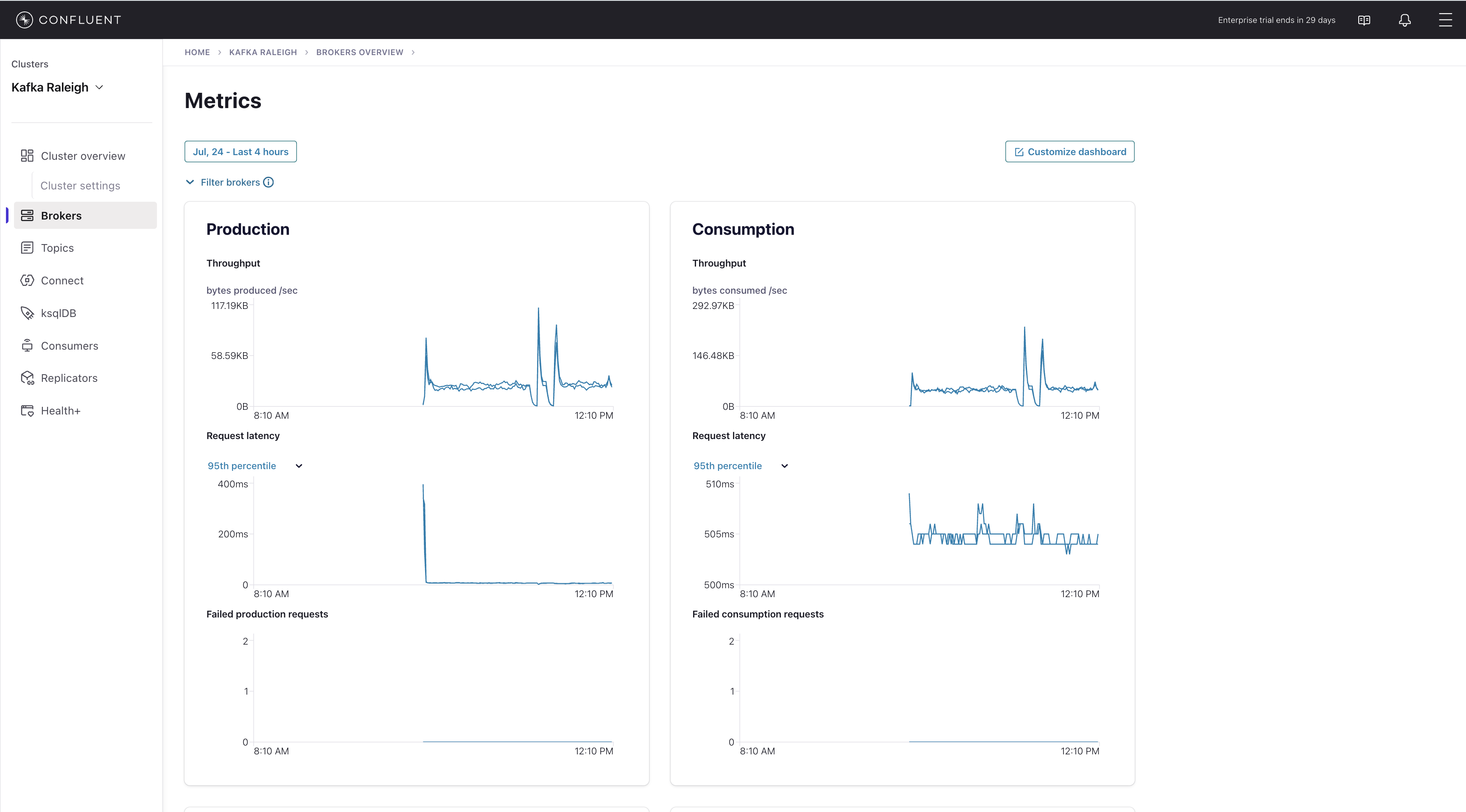 2inside the Brokers box and when the Brokers overview pane appears, click inside the Partitioning and replication box to view when broker counts changed.