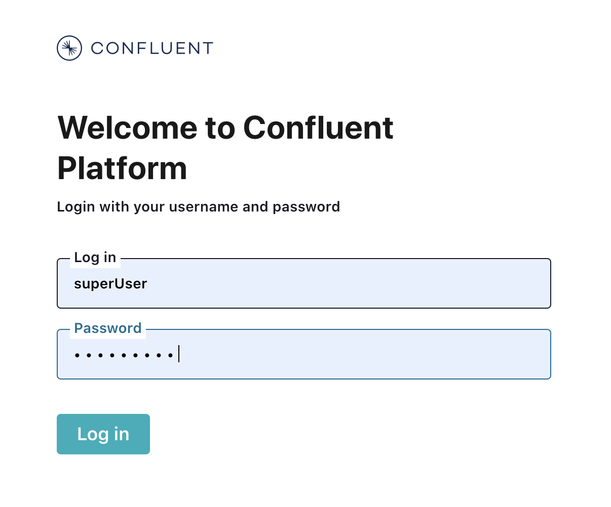 At the login screen, log into Confluent Control Center as