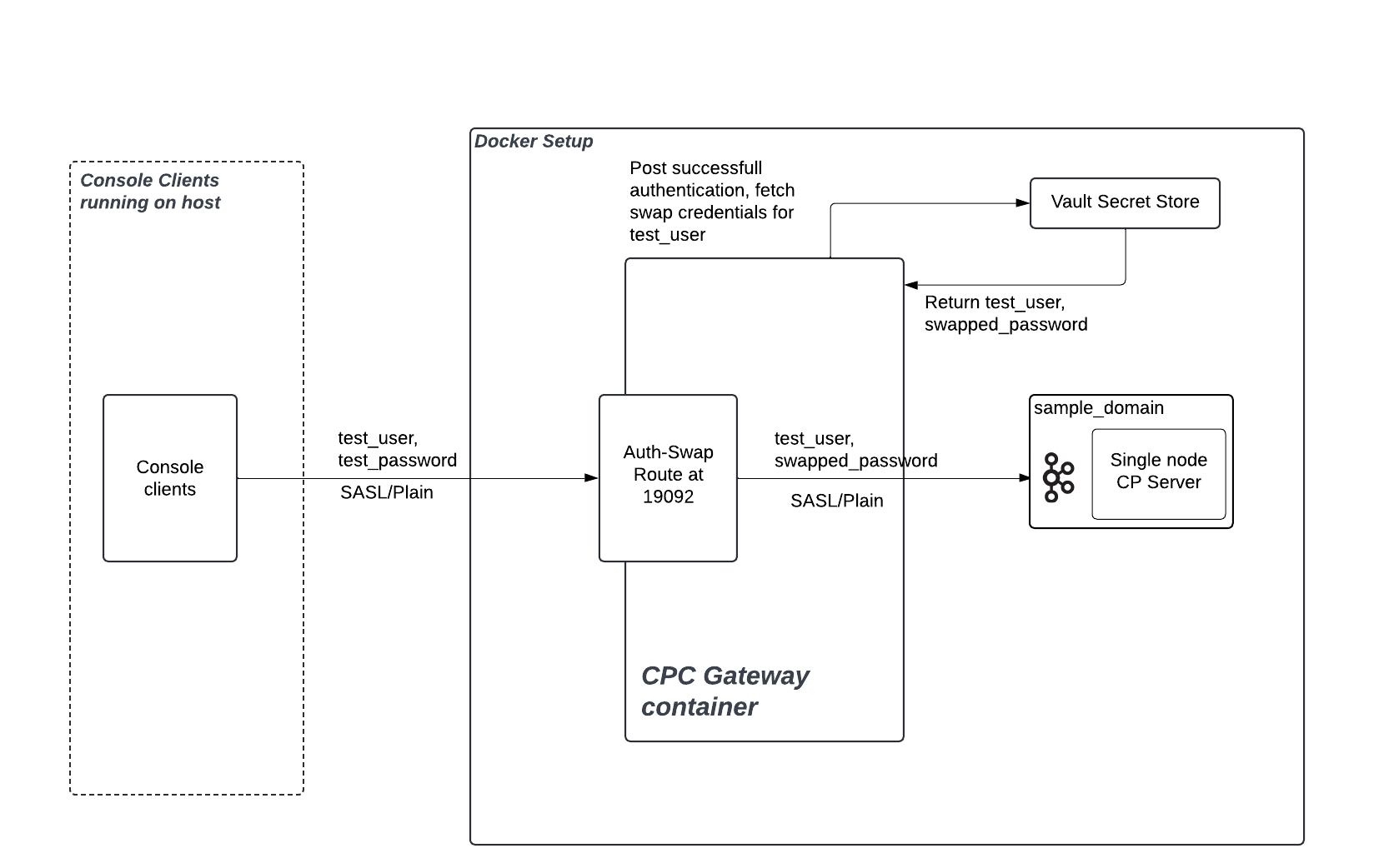 Authentication Swapping: Client credentials are transformed into different credentials before connecting to Kafka clusters.